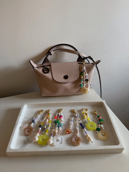 Glow up your favourite bag with one of our new limited edition one-of-a-kind handmade bag charms.