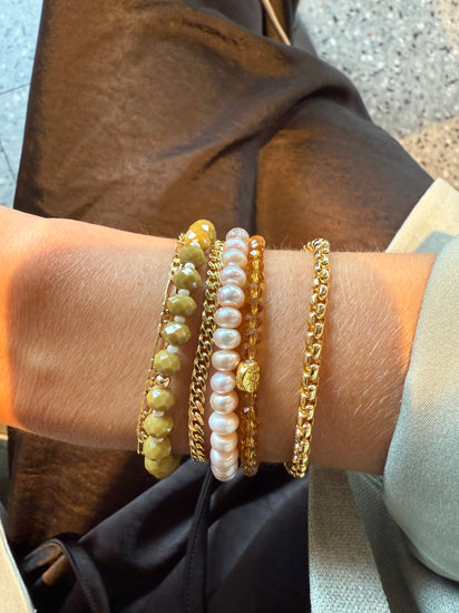 Crafted for the modern collector, the Piazza Stacker is the foundation of your signature arm party. Featuring a sleek, uniform gold-filled chain and secured with a polished gold-dipped silver clasp, this piece is designed for seamless layering and standalone statement.
