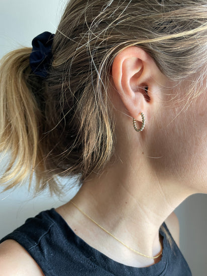 "These are my current go-to. They don't overpower any outfit or accompanying necklace stack. They are simple, trendy, comfortable and look great dressed up or down. I wear them for weeks on end. No tarnish in sight."